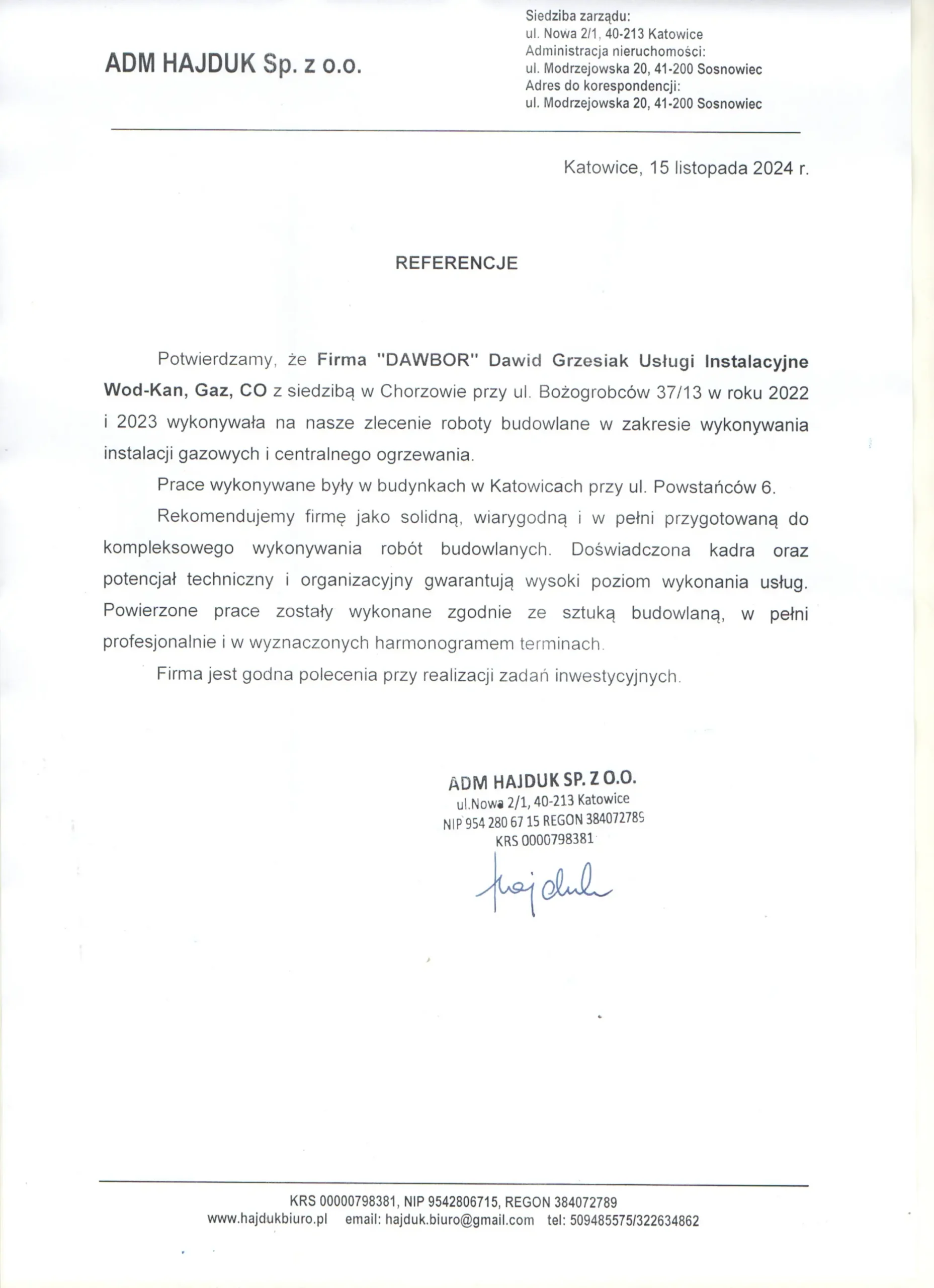 Jednym z naszych większych projektów była realizacja instalacji centralnego ogrzewania w budynku wspólnoty mieszkaniowej „Bukowa” w Katowicach. Montaż obejmował 60 lokali mieszkalnych, a nasz zespół dostarczył nowoczesne rozwiązania grzewcze, które zapewniły mieszkańcom komfort i oszczędności energetyczne.